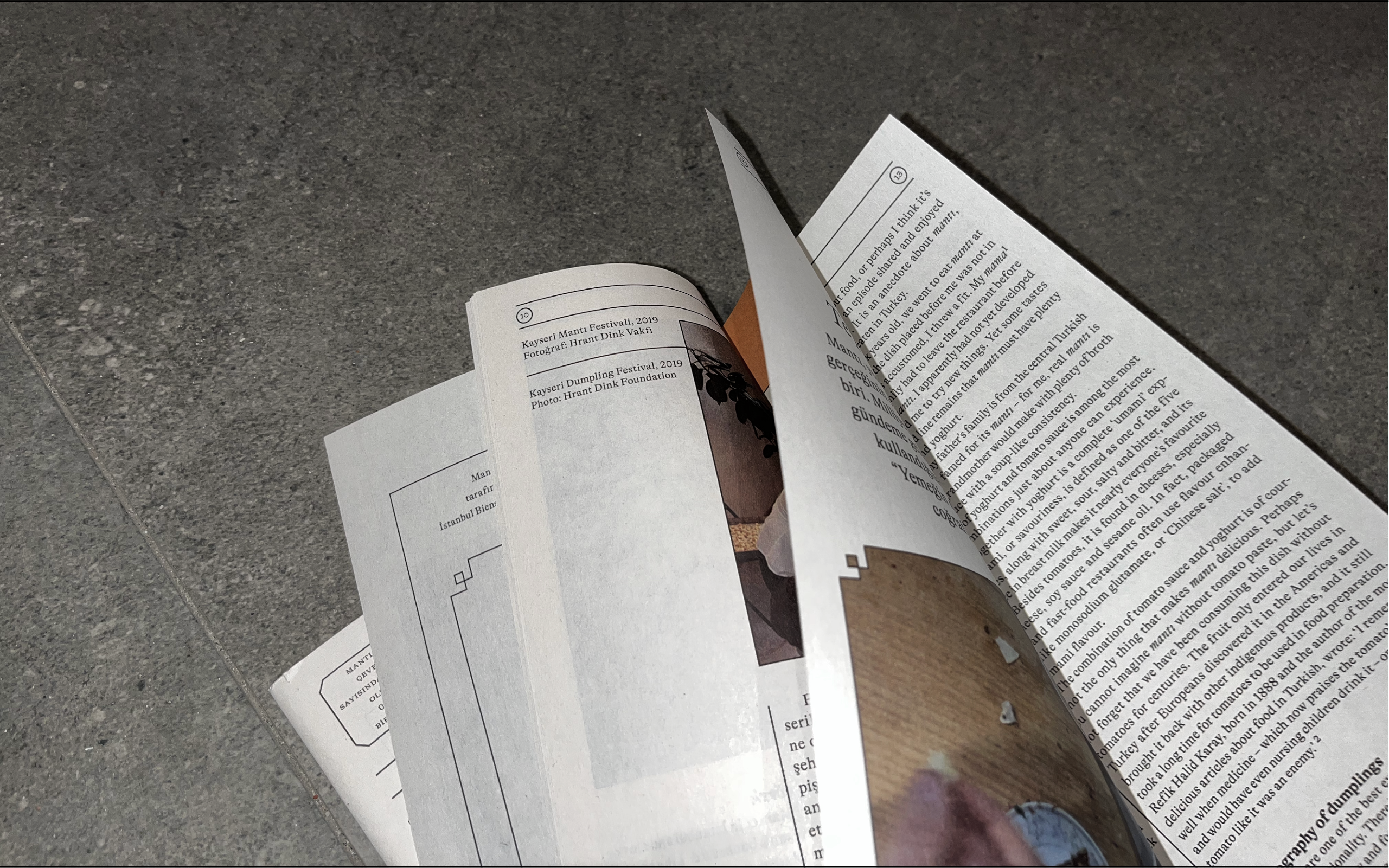 As one of the titles of the 17th Istanbul Biennial, Dumpling Post is named after the ‘Kayseri Dumpling Festival’ and is a form of reaction and action. This newspaper was published after the Hrant Dink Foundation’s “Kayseri and Its Surroundings: Social, Cultural and Economic History Conference”, which was planned to be held in Kayseri in 2019 and was banned first by the Kayseri Governor’s Office and then by the Şişli District Governor’s Office.